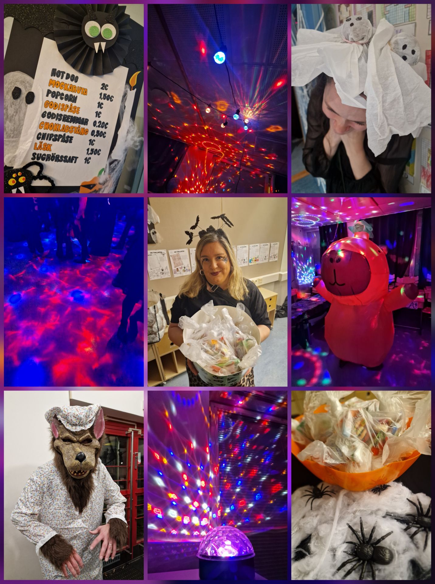 Halloweendisco för skolelever ordnades av föräldrarna på åk 3 fredagen den 31.10.2025. Det gäller att planera café, designa flyer, luska ut musik, dekorera enligt tema, skicka whatsappmeddelanden, kuska kassaskrin, kontakta skolan, poppa popcorn, städa efteråt och så mycket mer. TACK!